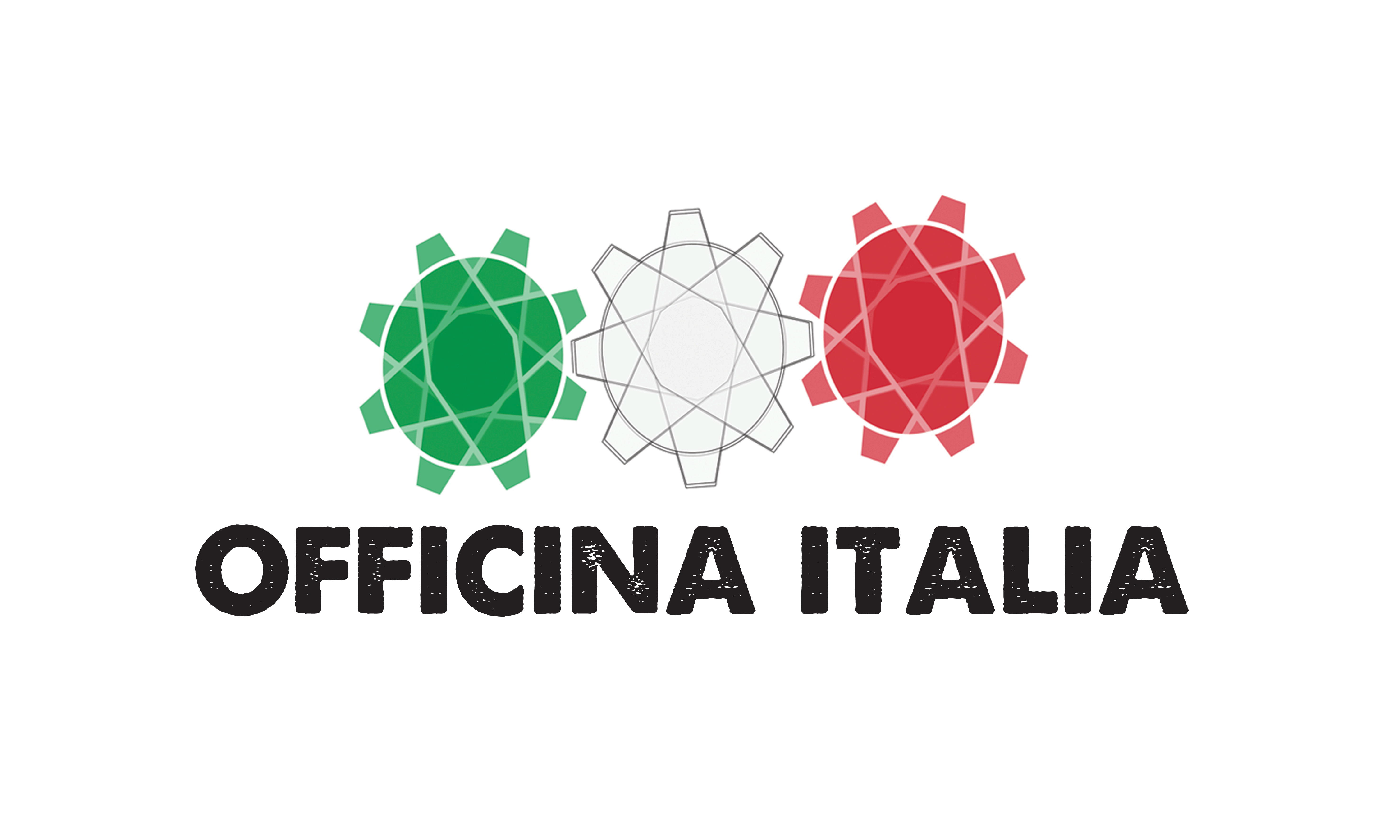 Una nuova avventura grafica. Ideare un logo per l’Officina Italia la costituente del nuovo centrodestra. L’idea, realizzata con immagini Fotolia, nasce e si concretizza con ingranaggi stilizzati tricolori che diventano tavole rotonde. Un riferimento alto e cercato quello della tavola rotonda. Dal caos dello scenario politico, attraverso i lavori degli ingranaggi metaforici di Officinia Italia, nascerà la piattaforma di rivendicazione del nuovo soggetto politico. Il font è Thunder of love: bastoni, graffiato, extra bold.